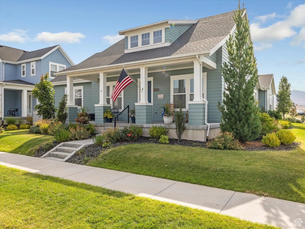 Welcome to this beautiful rambler in Creekside Village in Daybreak, located on highly desired corner lot. This home has an open, inviting porch with trim LED lights and peek-a-boo views of the Wasatch mountains. Enjoy your fully privacy fenced backyard with plenty of room to grill, relax, and entertain. The home boasts an amazing open floor plan with 10' ceilings on the main floor and 9' in the basement. This home features many upgrades including a gourmet kitchen and large, spacious island, granite countertops through out the home, and a large walk-in pantry.The main-level primary suite is a peaceful retreat with custom wall details and an en-suite bathroom with a large vanity, a deep soaker tub, euro glass shower, and a large walk-in closet. The main-level includes two bedrooms, a full bath, and a powder bath, an office space, laundry room, a great room, and dining. Downstairs the large basement is more than half finished and has a large great room with plenty of space to have games, a theater, and entertainment. There is a three quarter bath and large bedroom with a walk-in closet. The unfinished part of the basement holds storage and potential additions for the future. This home has large two car garage with few stairs, making more room for your vehicles and storage. This home is just minutes from Oquirrh Lake, amazing schools, miles of trails, and Daybreak's most loved amenities. Contact the listing agent today to schedule a private showing! Square footage figures are provided as a courtesy estimate only and were obtained from County Records. Buyer is advised to obtain an independent measurement.